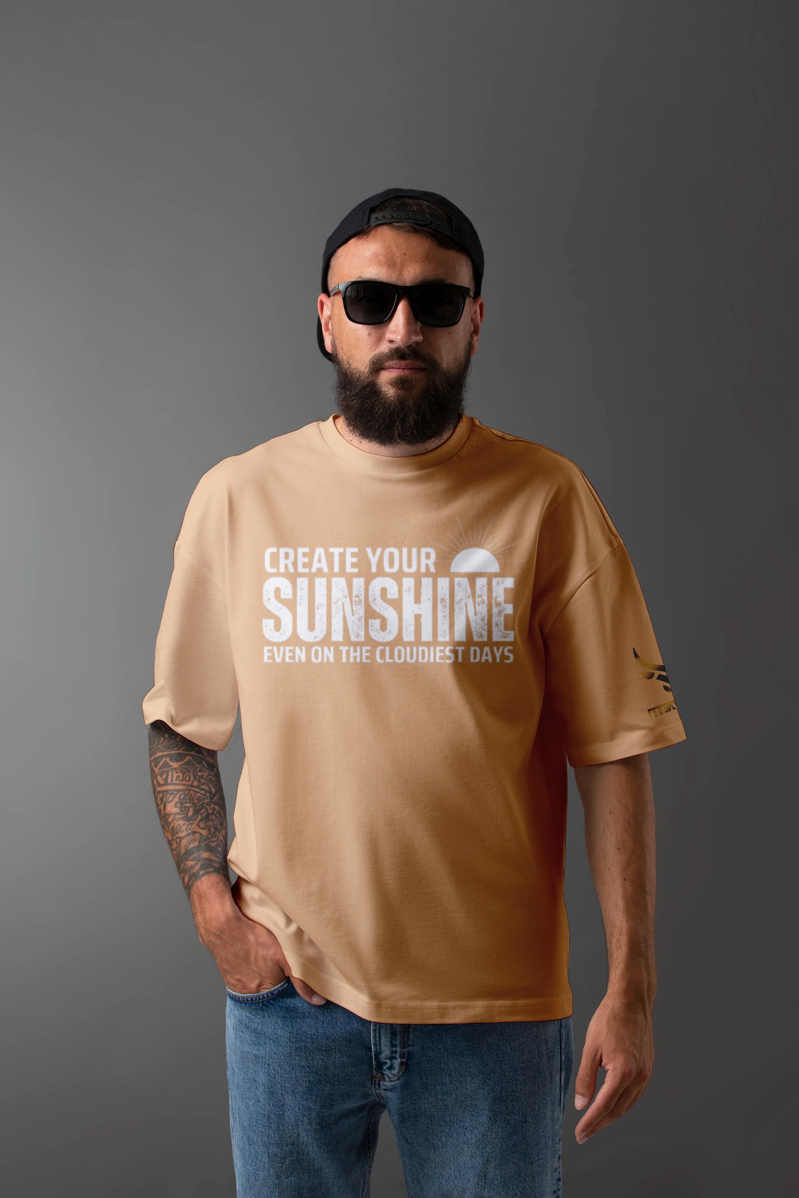 Brighten up even the cloudiest days with this uplifting and stylish oversized t-shirt! Featuring a minimalist yet powerful design, this tee showcases the motivational phrase "Create Your Sunshine", accompanied by a simple sun illustration.