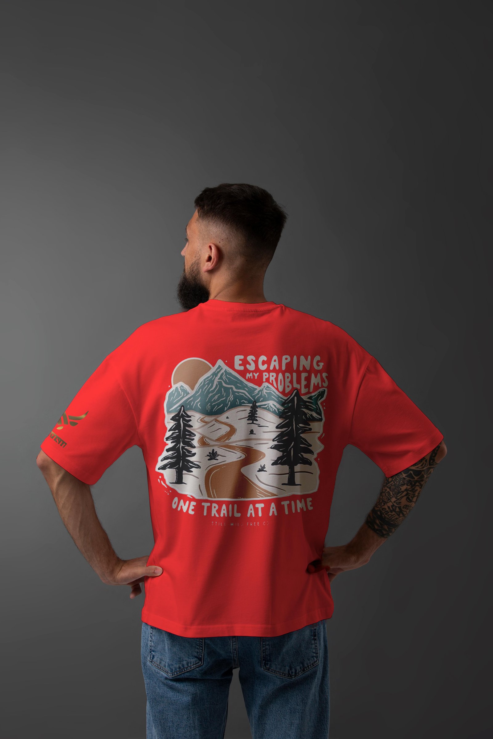 • The bold yet playful typography reminds us all "Escaping My Problems, One Trail at a Time."
