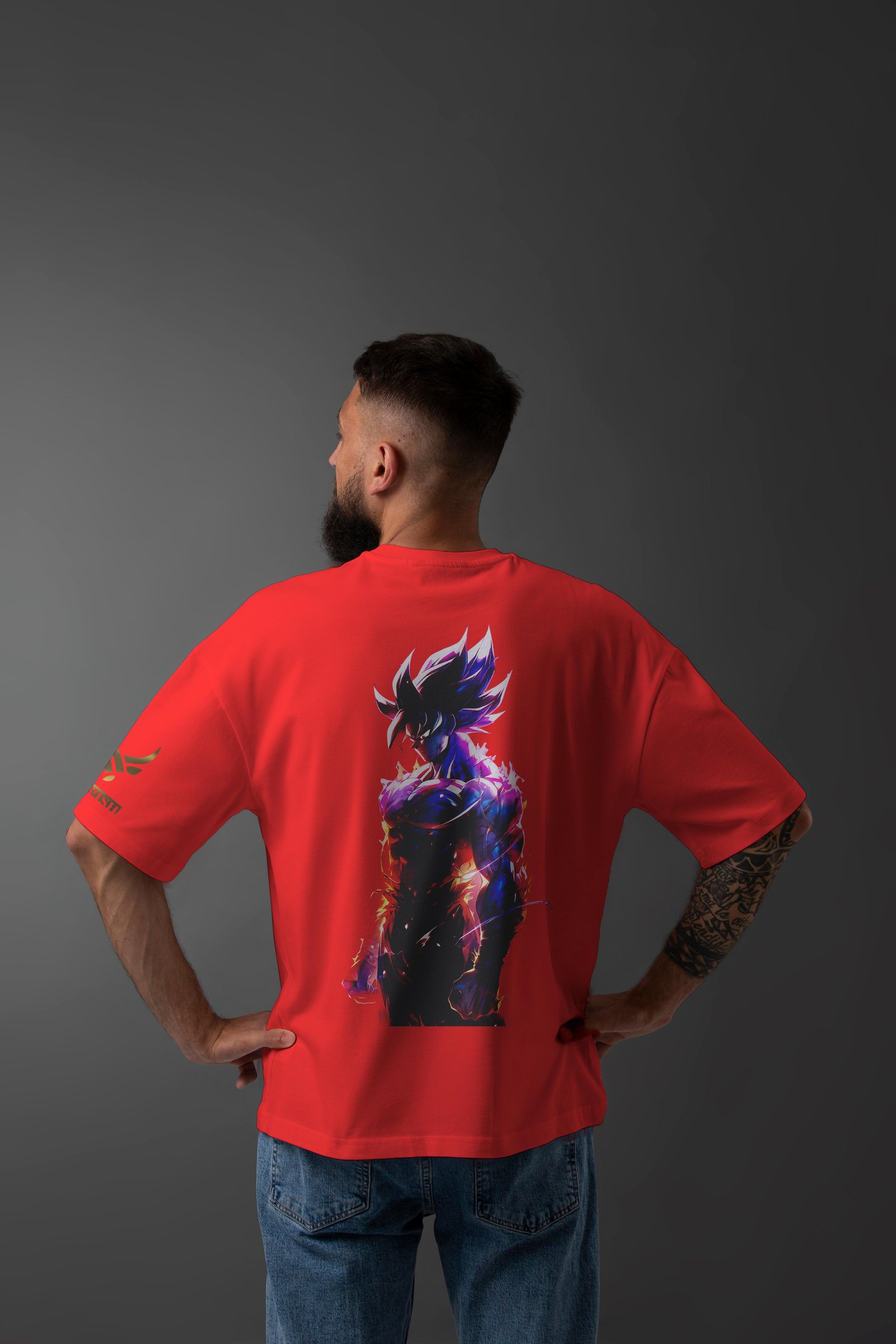 Ignite your inner warrior with this electrifying oversized t-shirt, inspired by the legendary Saiyan's final form.