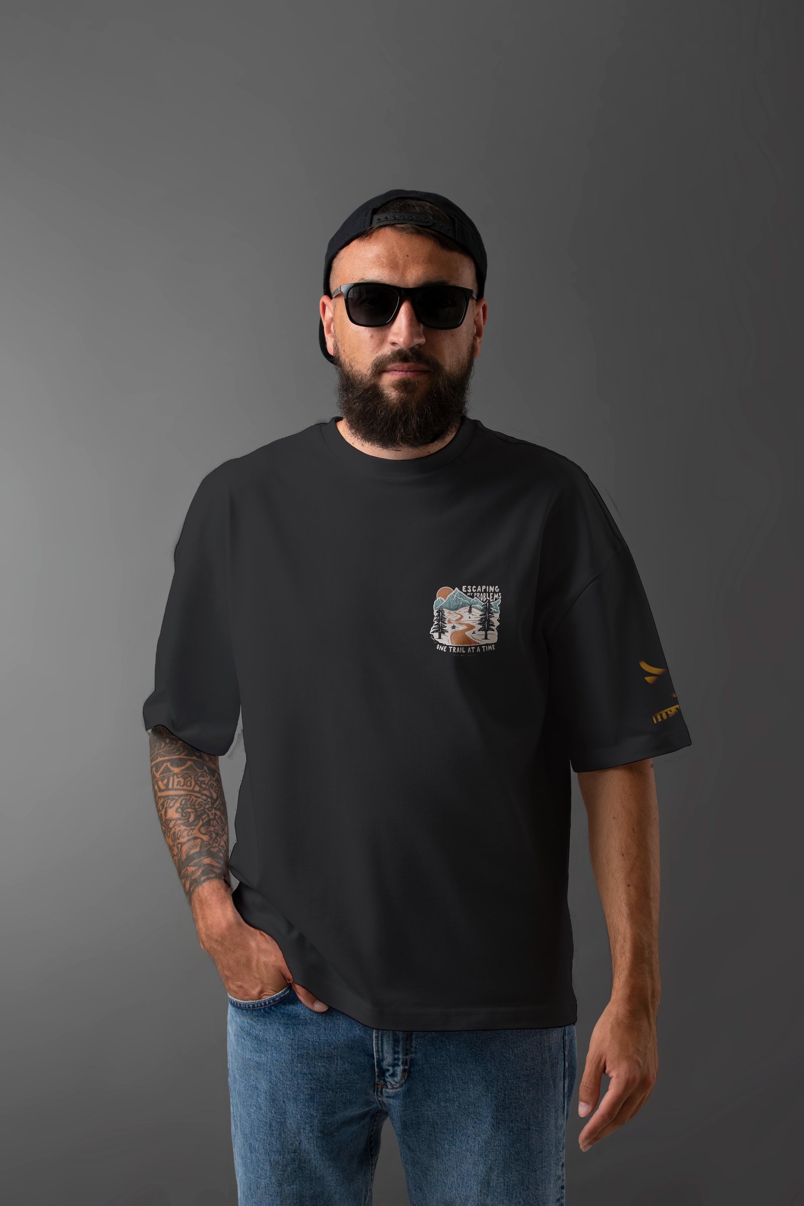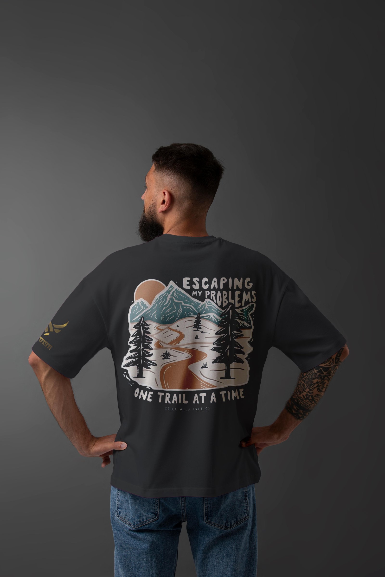 Step into the wild and leave your worries behind with the "ESCAPING MY PROBLEMS" Oversized T-Shirt-a must-have for adventurers, wanderers, and free spirits.